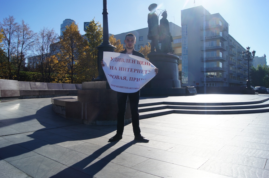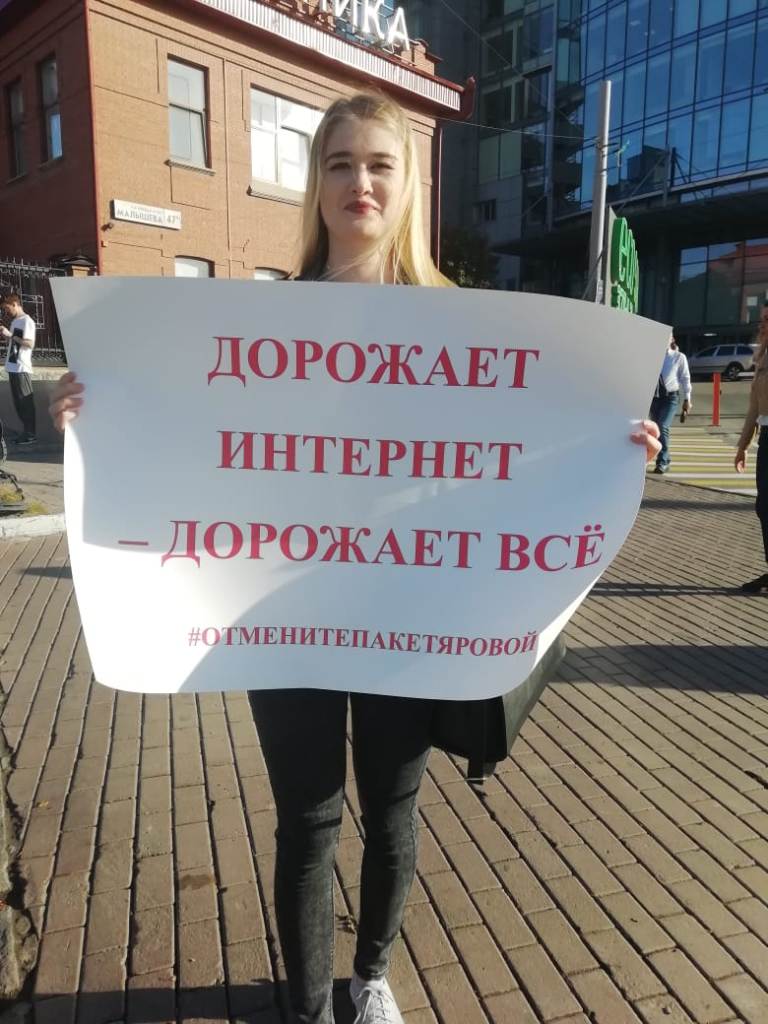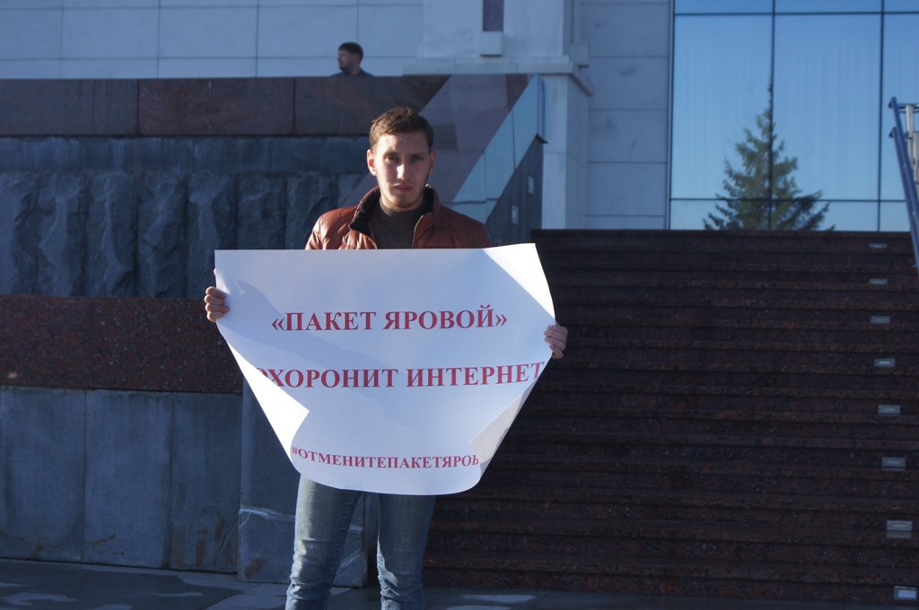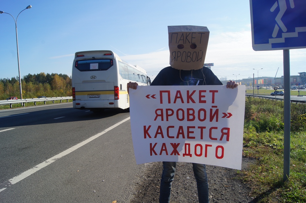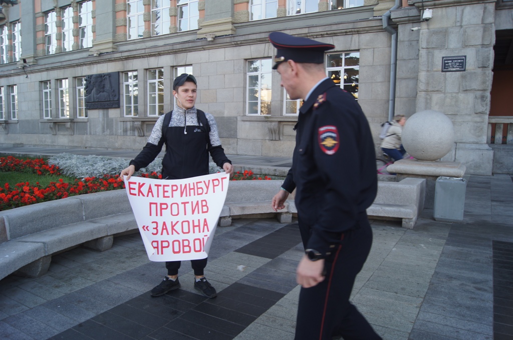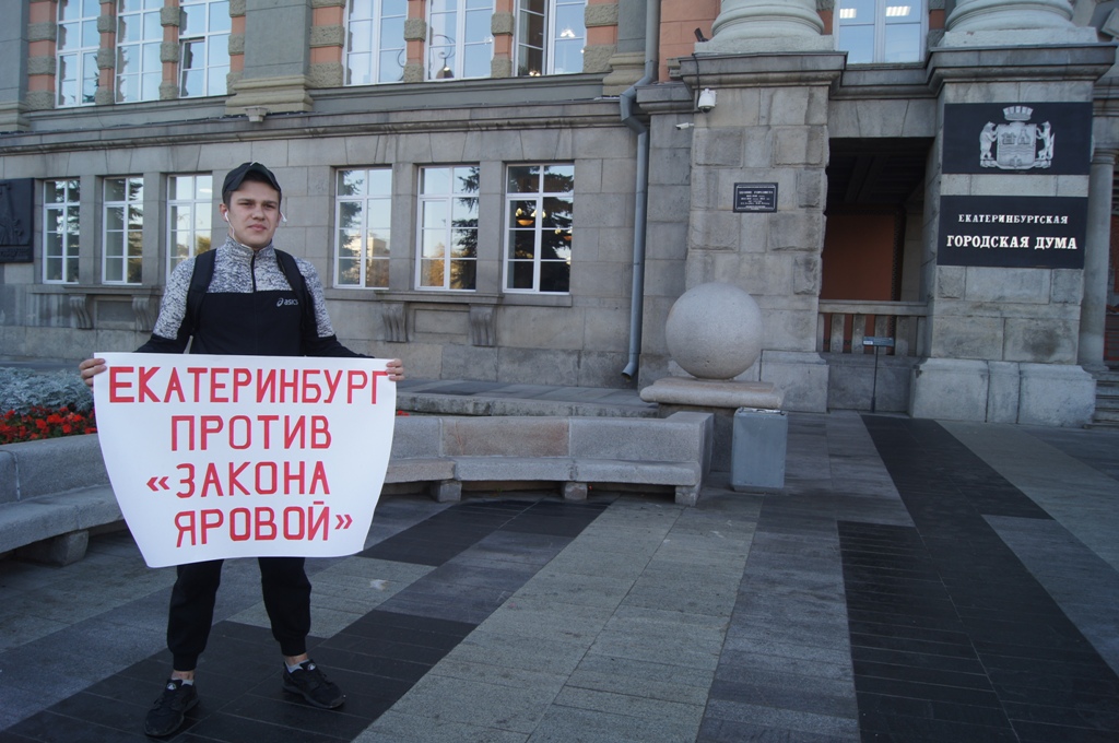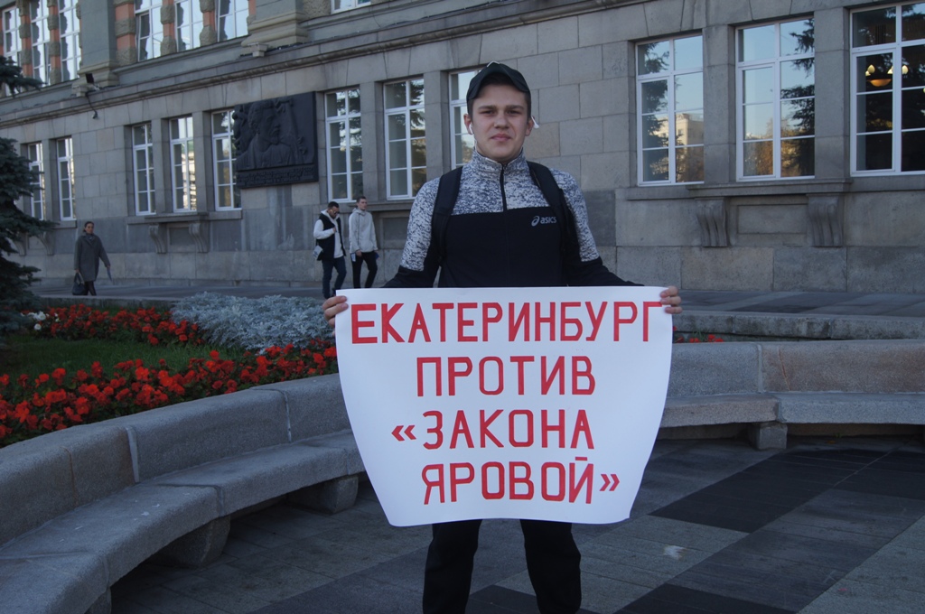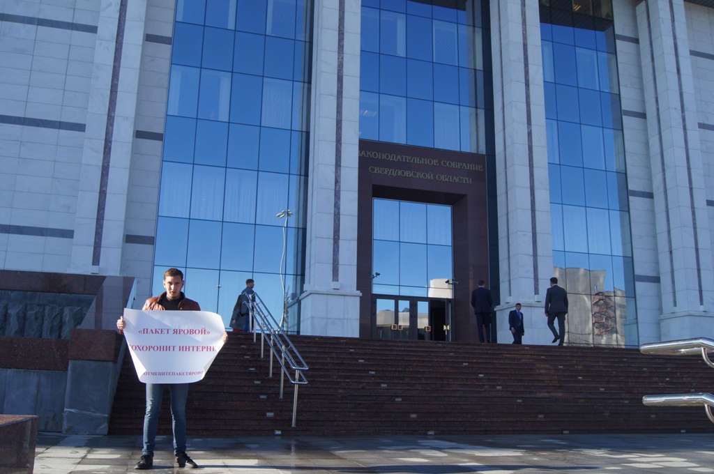 В Екатеринбурге 24 и 25 сентября в разных частях города прошли одиночные пикеты, в ходе которых уральцы выразили свое несогласие с реализацией «пакета Яровой», согласно которому операторы связи обязаны хранить текстовые сообщения, голосовую информацию, изображения, звуки, видео и иные сообщения пользователей. Мероприятия стали частью масштабной публичной акции, которая стартует по всей России в преддверии 1 октября, когда «пакет Яровой» вступает в полную силу.